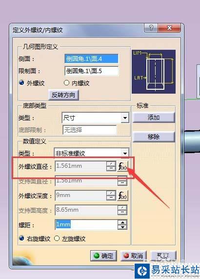 7、会弹出下图设置,比如要修改外径,但发现其为灰色,为不可修改状态,点击箭头指的fx,会弹出图2对话框,点击橡皮擦,清除函数(软件内置一系列模型,通过函数快速生成)后,点确定,该项即可编辑。