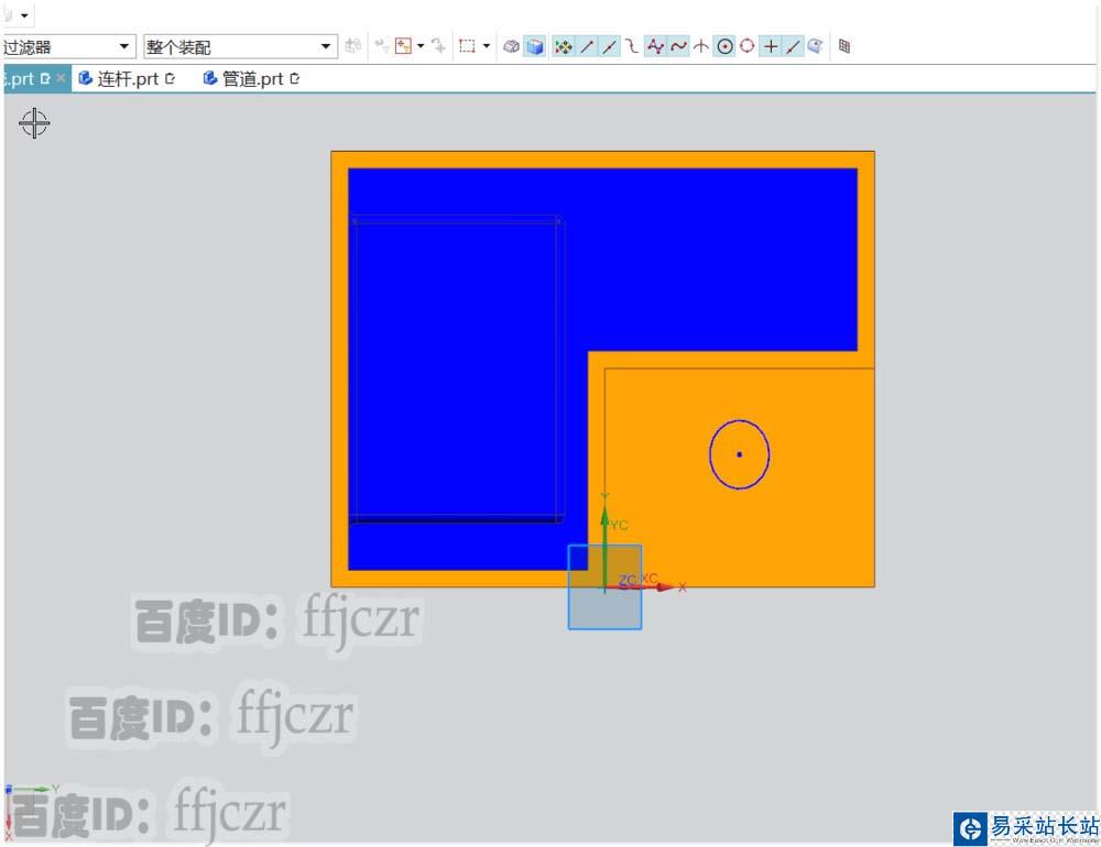 1、选用之前建好的一个模型来说明.要在图示的面上绘制截面线,结果不小心鼠标将平面拖成了三维空间了,怎么办?只要用鼠标将视图调整到大致位置后,按F8就可以将视图摆正了。