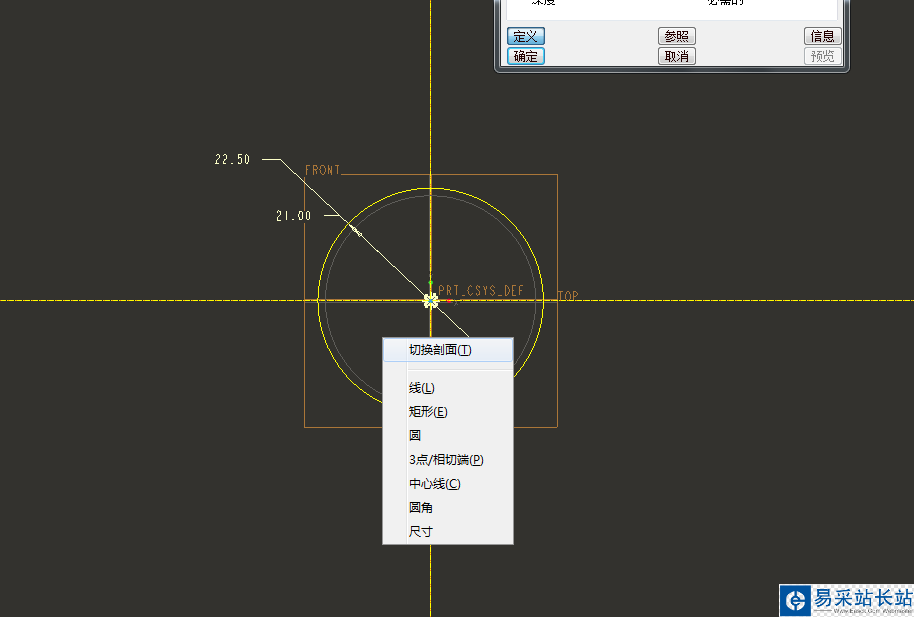 4、绘制截面,完成一个截面时,点击鼠标右键,选择“切换剖面”,并绘制其他截面图形