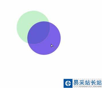 1、比如,画布中现在有两个圆形,有部分重叠在一起。