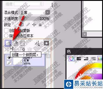 2、如下图箭头所指的按钮,点击一下,即新建一个空白图层。
