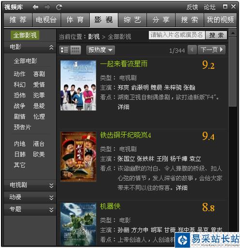 2.分类信息:点击各个分类的按钮,可进入相应种类的影视列表页,再挑选您喜欢的节目。