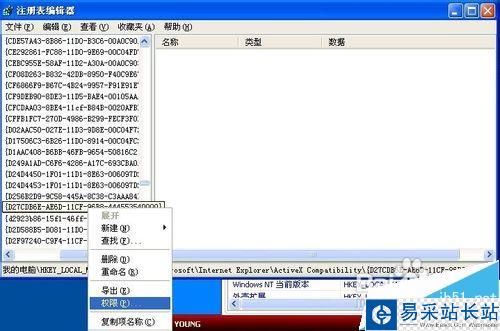 8、在删除时可能会遇到“删除项时出错”之类的错误提示框,请右击该子项,弹出的快捷菜单单击“权限”命令