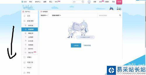 3、登陆后鼠标滑到头像上 点击投稿管理~
