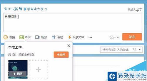 3、把做好的图片上传微博相册(可以在微博偏好设置里去水印)