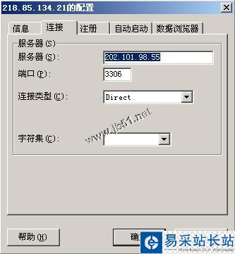 四、输入MYSQL服务器的IP地址,例如:202.101.98.55,如下图