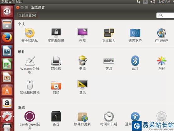 一、首先打开ubuntu设置(右上角的齿轮),或者直接在左面找到设置,如下图所示。