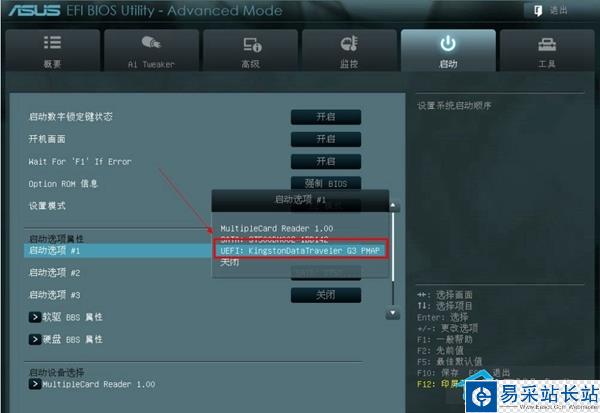 5.切换完成后,启动选项#1会显示成你的U盘,如下图