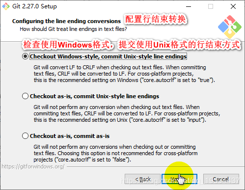 9、配置行尾转换,选择默认【Checkout windows-style】,点击【Next】。
