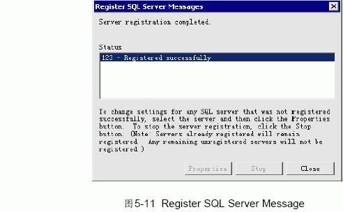 (6) 出现如图5-11 所示的register sql server message 对话框,按“ok” 按钮结束设置。