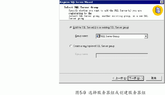 (4) 选择服务器组或创建服务器组。如图5-9 所示。单击“下一步”按钮。
