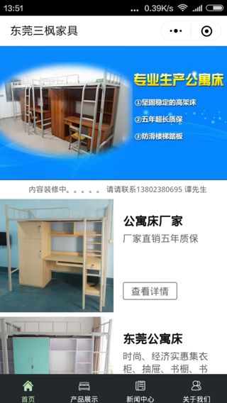 扫码体验小程序东莞三枫家具主要生产学校宿舍公寓床,铁床。工厂宿舍上下铺铁床。小程序类别:生活服务开发者:东莞市三枫家具有限公司小程序截图