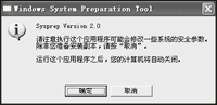 完成了上述操作之后,接下来就需要对系统进行重新封装了。这时在刚才从Windows XP安装光盘中解压缩文件夹中双击sysprep.exe文件,首先将看见图4所示的提示窗口(如图4),点击“确定”之后准备封装。