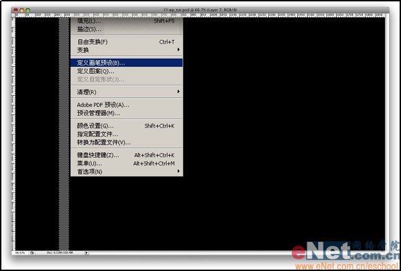 2.设置画笔-建立一个新图层用灰色填充。执行编辑-定义画笔预设。将新预设的画笔重新命名为"rec brush".