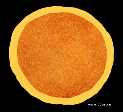 8.新建一个图层,命名为桔子皮。填充为黄色,然后一样创建为剪切蒙板(方法同第6部),将中间删除出一块不规则区域。