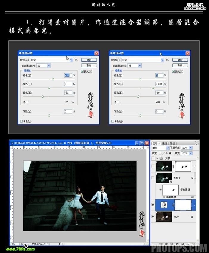 photoshop处理暗光婚纱照片