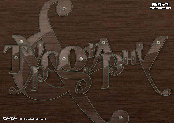 13、用同样的方法制作小铆钉,并把大小铆钉钉在字母上,效果如下图所示: