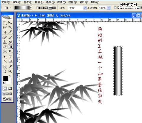 5、新建图层,用矩形工具作长条选区,在选区内拉一个对称渐变。