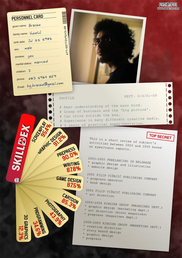 一年一度的招聘高潮又来到,在这里很多找工作的朋友都希望将自己的简历做的十分出色,而作为网页设计师等从事设计行业的人员来说,简历的好坏完全可以体现本身的设计功力,所以做一份具有创意和设计感简历是设计师能力最好的体现。