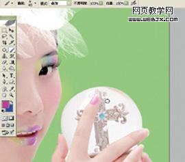 28、新建图层,将前景色设置成黄色,在水晶球上画出不规则黄点,再将前景色设置成白色,同样画出不规则白点,效果如图所示。