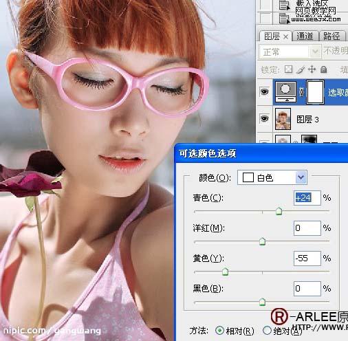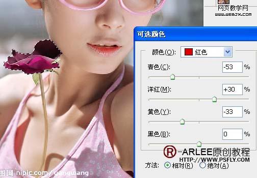 12、新建可选调整层。 13、新建个空白图层为美女加点腮红,先拉个选区,羽化一下,具体看图。 14、选取腮红的颜色。 15、模式改为颜色。