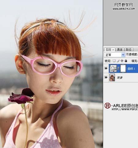 1、打开原图素材,新建曲线调整层,目的将暗部提亮。 2、利用图层蒙版将衣服上过亮的搽出来。