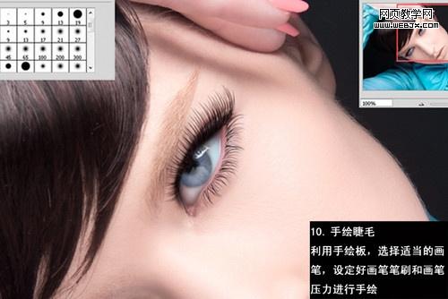 11、睫毛的细节调整。调整睫毛的疏密和深浅变化,利用手绘板和加深减淡工具