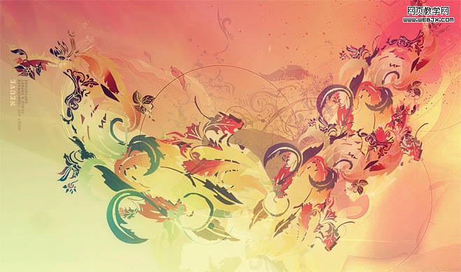 14、打开“素材6”拖进来将其重命名为“图层7”,设置该图层混合模式为“滤色”,按ctrl+t调出自由变换控制框,按shift缩小图像并置于画布的右上角,回车后得到如图20所示效果。