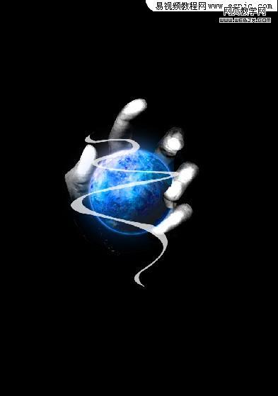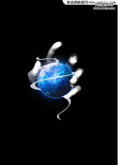 12. 打开“素材3”拖至文件中,配合自由变换得到如图21所示效果,按照第5步为“图层3”添加图层蒙版,将球体上面部分隐藏如图22所示。重复本步操作,打开“素材4”,调整图像及添加图层蒙版得到效果如图23所示。