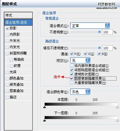 16、在“形状7”名称后空白处双击,在弹出的“图层样式”对话框中勾选“图层蒙版隐藏效果”复选框如图26所示。