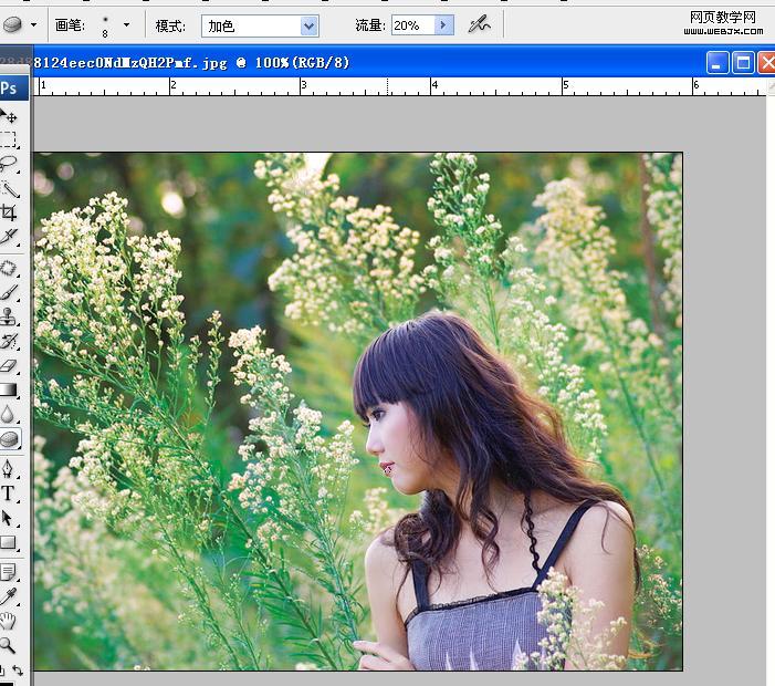 6.做好后观察下`嘴部有些灰..这时用加色工具为嘴加点饱和度..数据如图...磨皮我这里用了模糊工具涂了下
