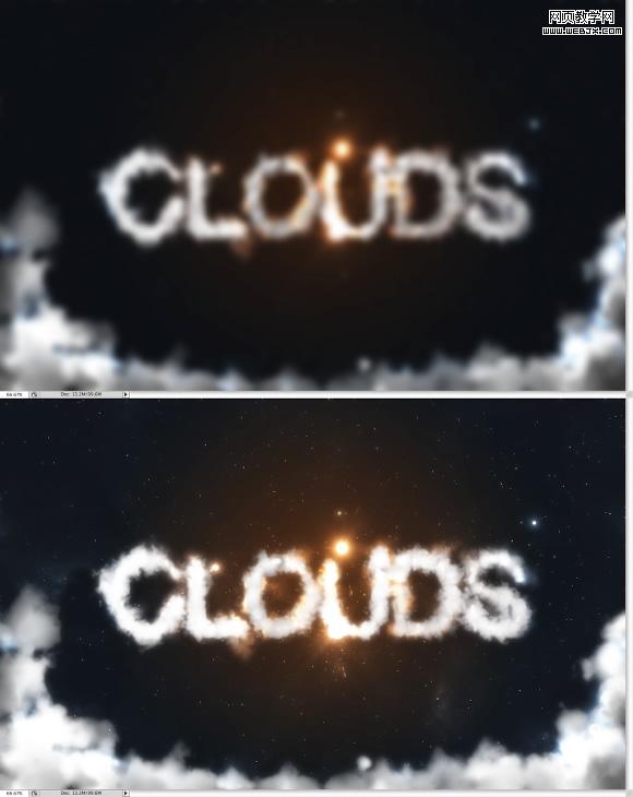 本photoshop教程主要教你如何快速制作好看的白云字特效,教程中没有白云素材,主要利用笔刷,图层样式,星光笔刷等内容达到最终效果。