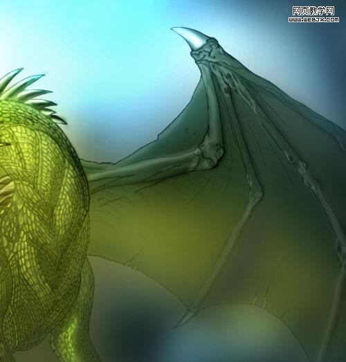 下面我们用加深和减淡工具在巨龙的鳞片上添加光线和阴影