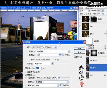 1、打开原图素材,把背景图层复制一层,执行:图像 > 应用图像,参数设置如下图。