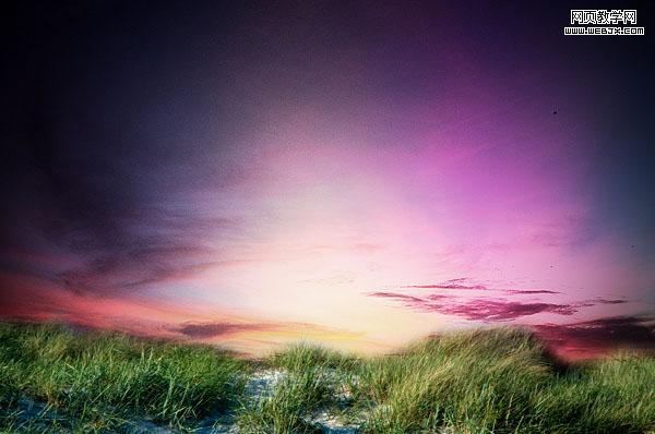选择原始的sky然后调整色彩平衡,然后降低sky gradient overlay’图层的不透明度从50%到20%。