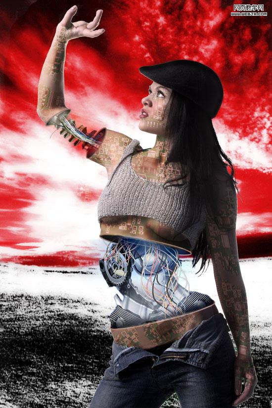 本photoshop教程我们教大家合成一个性感女机器人,教程主要利用一些滤镜、渲染方式以及一些材质合成而得,希望大家喜欢,先看最终效果。