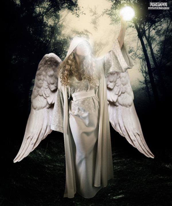 本photoshop利用几个素材制作一幅非常不错的暗夜天使照片。