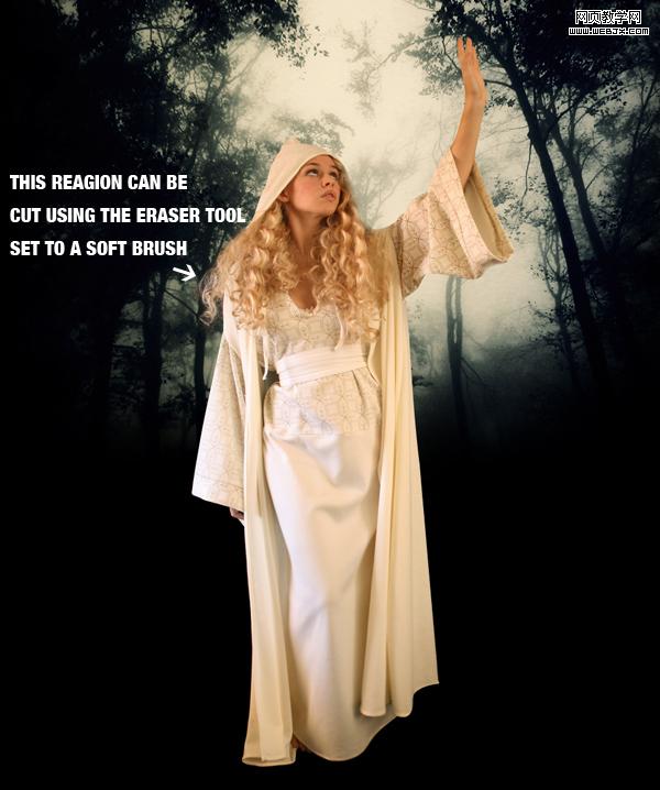 使用钢笔工具(p)将人物抠出,对于头发等部位可以用软橡皮擦细心擦出。