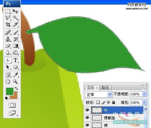 绘制叶子的路径,并用绿色进行填充。