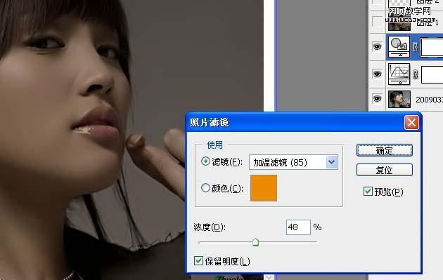 3、选择菜单:图层 > 新建调整图层 > 照片滤镜,参数如下。