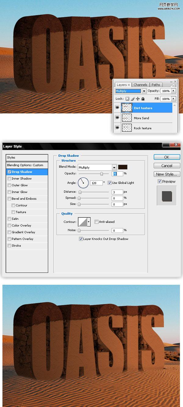 改变“泥土纹理”的混合模式为正片叠底,添加少量阴影效果。