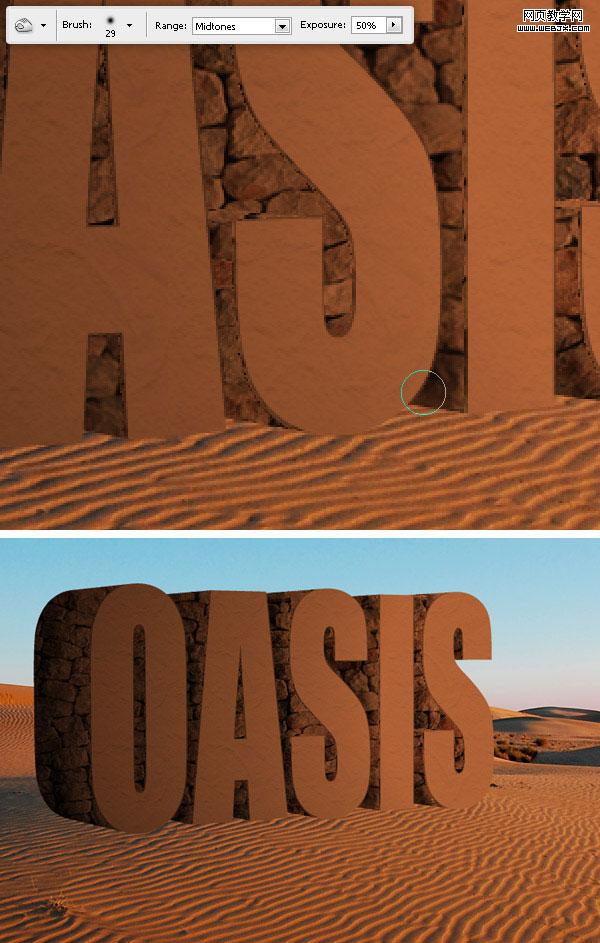 使用加深工具,加深“岩石纹理”层上的一些阴影。