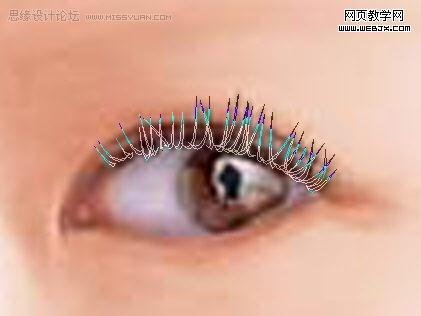 接下来是睫毛,选钢笔工具,勾出睫毛,填充黑色,再用画笔加工,调整细节,很辛苦,耐心啊