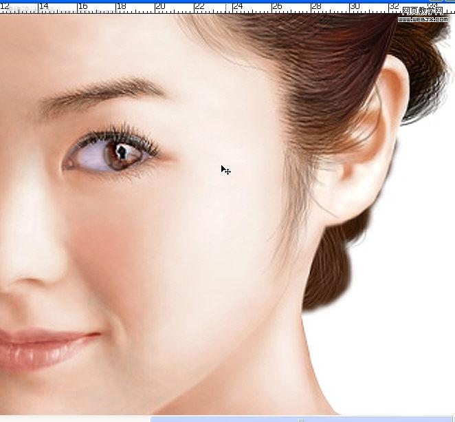 刷几笔,再把层的不透明度也降低,然后选橡皮工具,橡皮的透明度也降低,在粉红色的边缘擦,尽量让粉红色溶入皮肤。