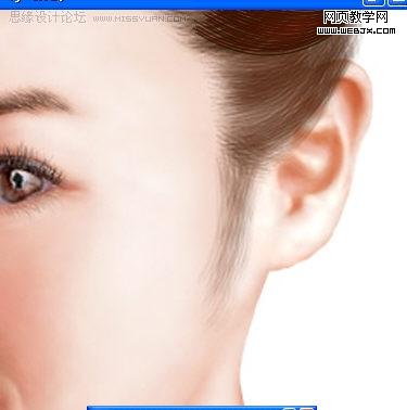 新建一层,选画笔工具用毛发笔刷画出耳后头发。