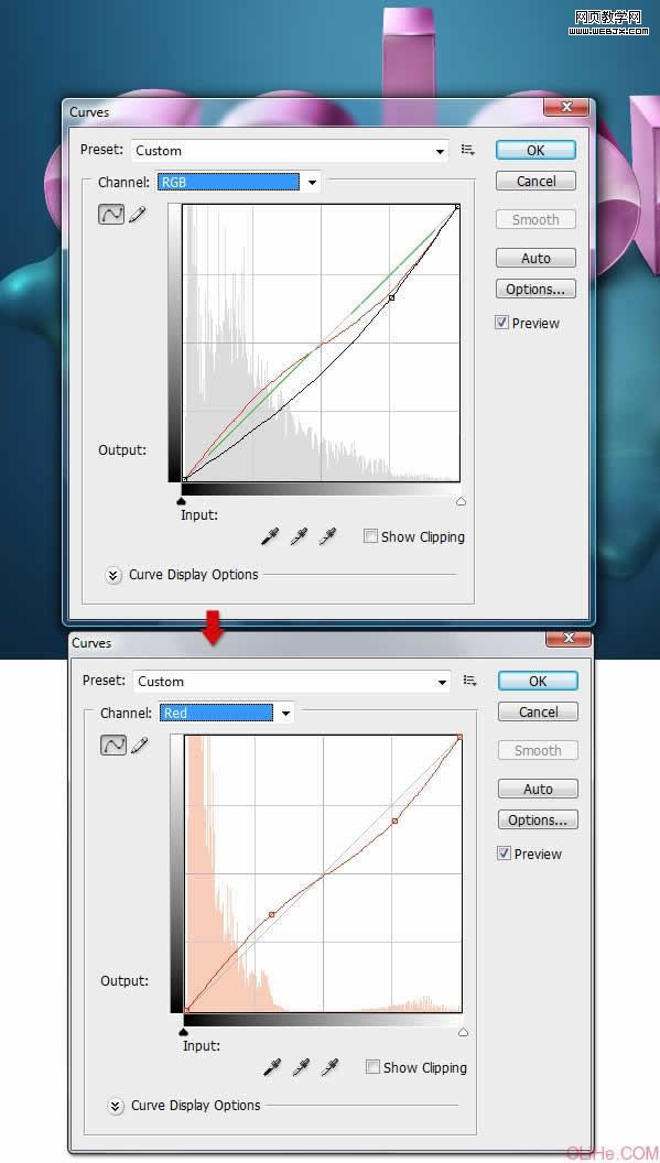 最后,你可以添加曲线调整图层。这不是必要的,但我认为黑暗和对比色调能体现出不错的感觉。你也可以在曲线中应用红色通道,使文字的颜色看起来更理想。