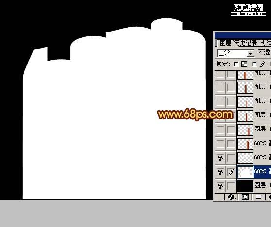 4、这一步来复制文字图层,选择文字图层,按住alt 键,然后再按住方向键的向下键不停复制,大致超出画布即可,然后这些复制的图层都合并为一个图层,只保留最上面一个文字图层不要合并,如下图。