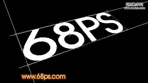 3、把文字栅格化图层,按ctrl + t 变形,按住ctrl 键调整文字的几个边角适当的贴近参考线,如图3,效果如图4。