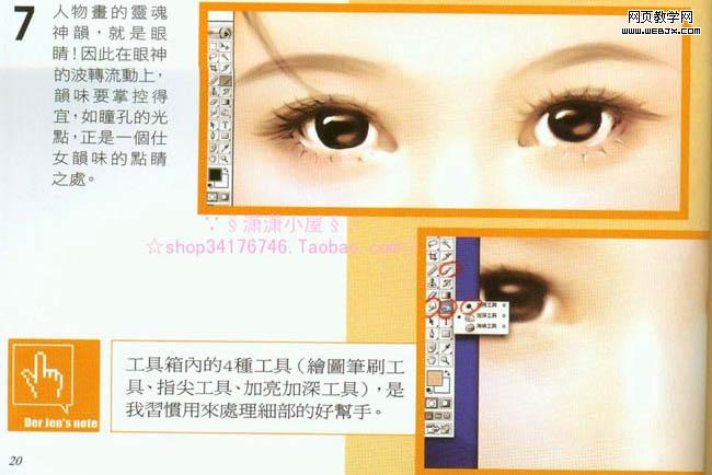 6、设定比较细的笔刷头,描绘眼睫毛和眼球明度及亮度。