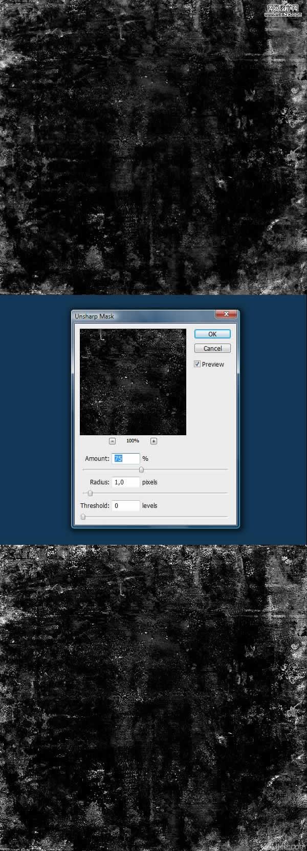 现在打开一些杂乱的图象(我选择了下图之一)。点击命令键 + shift键+ u降低饱和度(下图2)。下一步点击command + l(色阶),调整得到一个黑白区别明显的效果。下一步去滤镜>锐化>usm锐化,加强这一纹理。
